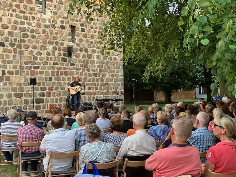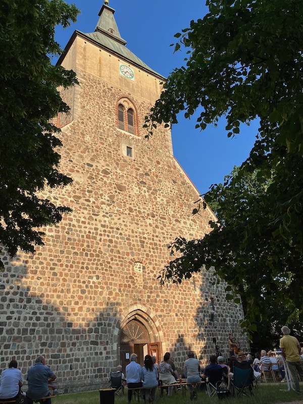 On Saturday, we drove south east to Altlandsberg which is just outside of Berlin. The concert was an outdoor event organised by the main church in the town. The church was built originally in 1450. It has been modernised recently and now has underfloor heating and chairs and a stage that can be moved outside or used inside.