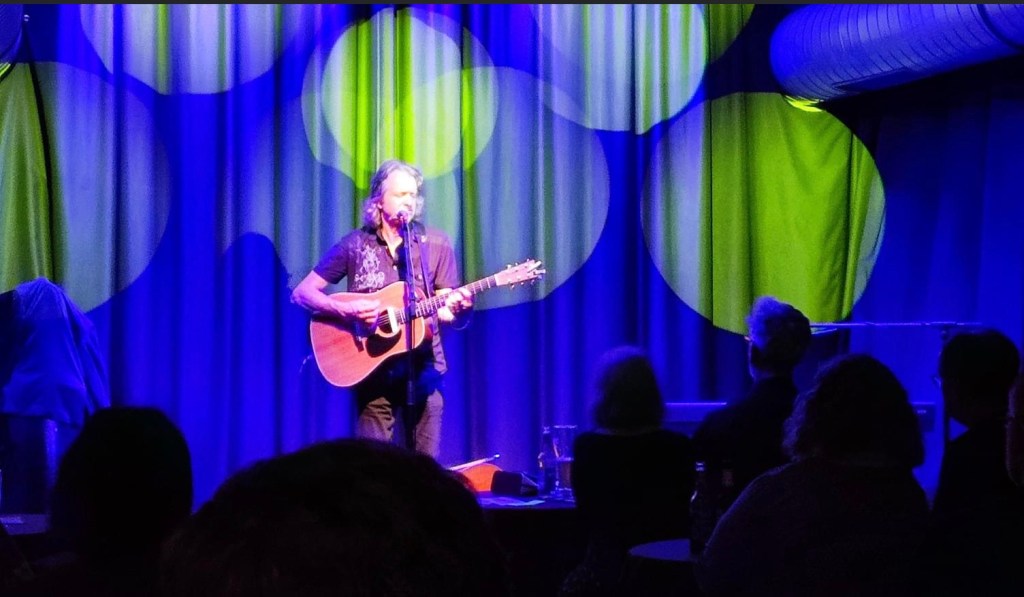 Tonight’s show is at the Grend. The building houses a theatre, a restaurant and a proper German music club with stage, lights and an excellent sound system. Juergen, their sound engineer, was very good and gave Ray the opportunity to present his songs on a professional stage with lights as you can see below.