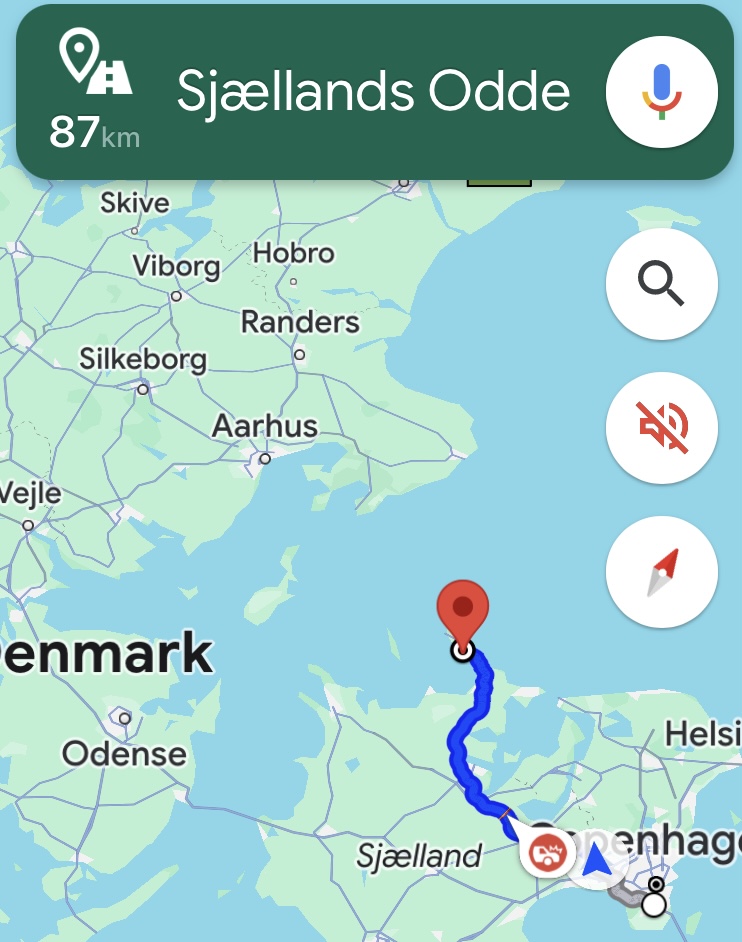 Ray picked me up the next morning and we drove over to Silkeborg in Denmark for the next show. Rather than make the long drive shown on the map above, we drove to Sjaellands Odde, a ferry port at the end of a peninsular pointing towards Aarhus which is only a short drive to Silkeborg. There are very many bridges and ferries in Denmark which are necessary to link together all the islands.