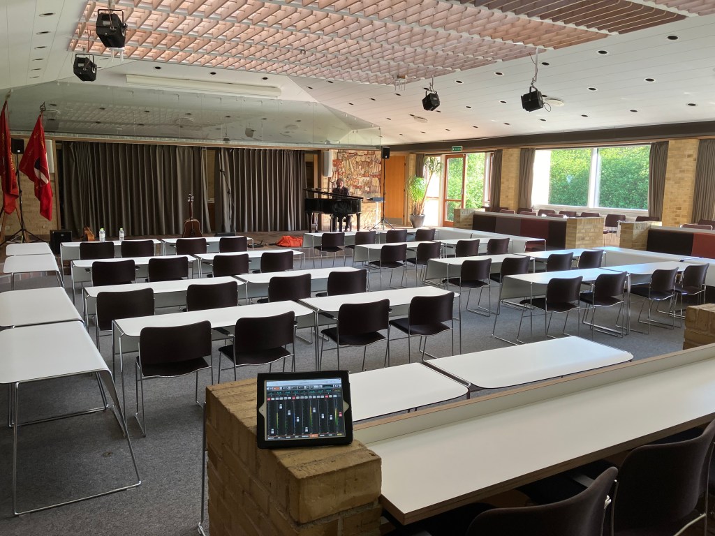 Not only was this an unusual venue, it was also an unusual audience. They were there for a week of training and most had never met each other before. This was the Thursday evening and they would be going home the next day. The concert came after dinner (with beer and wine) and so the audience were in a good mood. They talked and laughed while Ray sang but still managed to pay attention to the music.