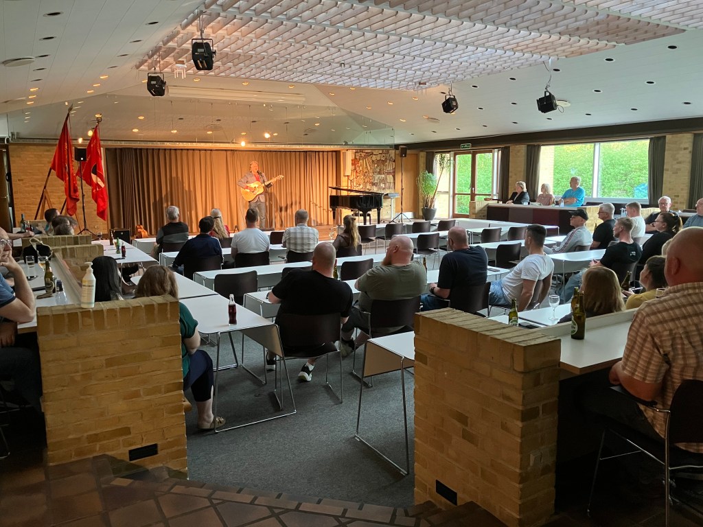 There is generally a good understanding of English in Denmark and they liked Ray’s introductions and jokes. Perhaps the beer and wine over dinner helped. They cheered when Ray introduced Black Is The Colour / En Vacker Van and he said he would sing in Swedish.