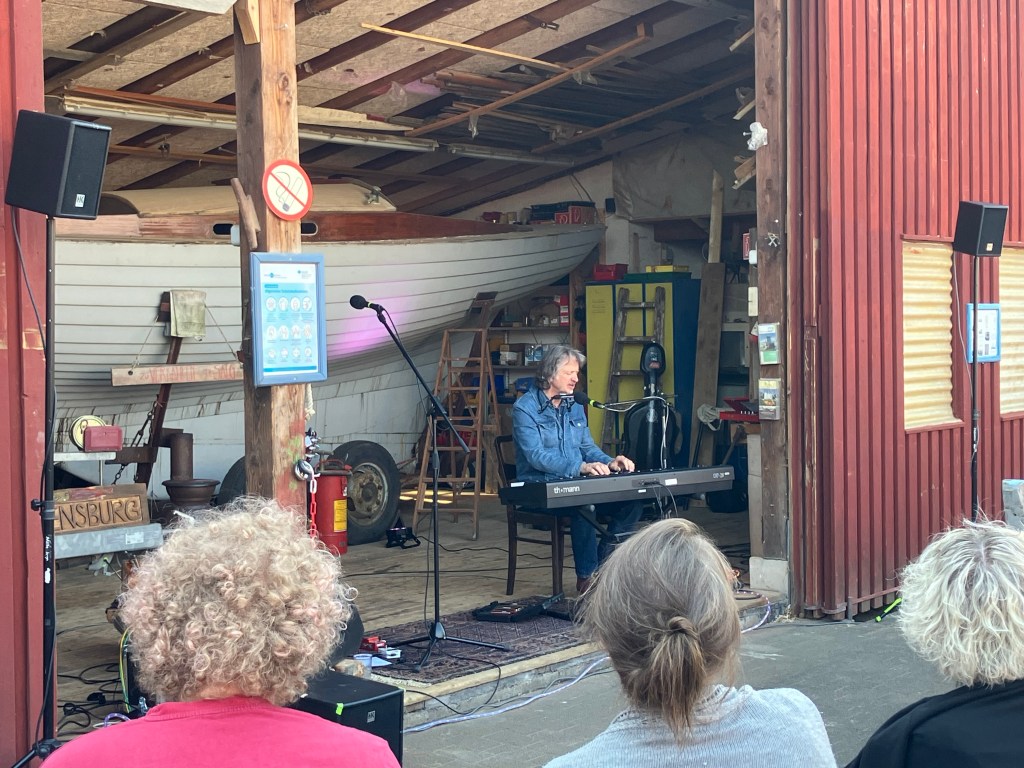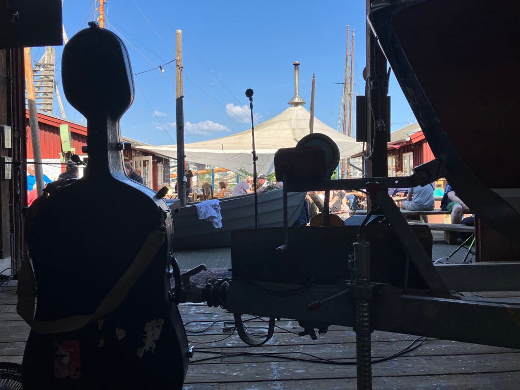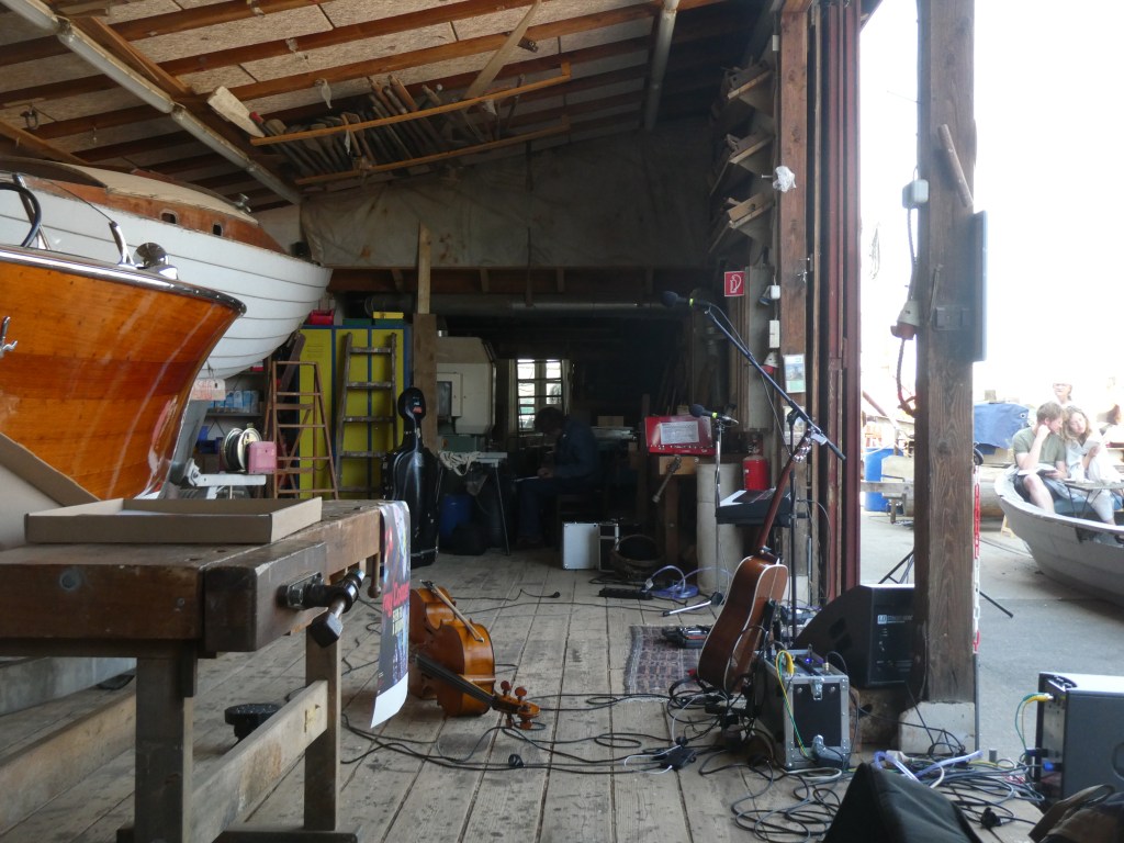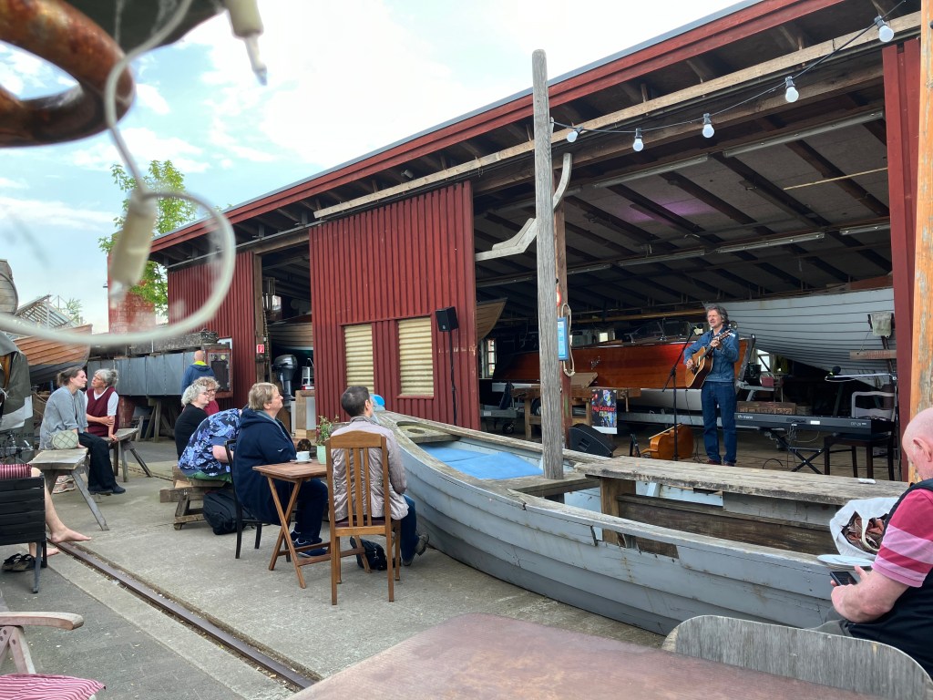 While on tour last year, Ray and I visited the cafe which is right by the harbour. We admired the boatyard and said it would be a lovely venue for an outdoor concert. We told this to Ray’s friend Thies and so this year he spoke with the owners of the boatyard and the cafe to arrange a concert.