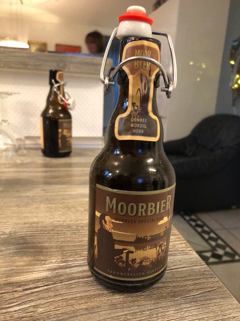 After the concert, we enjoyed a bottle of their local dark beer. The countryside around here is called the Devil’s Moor (as in English) but in German it’s more to do with the depth of the moor. The local beer is called Moorbier with a picture of the devil on the bottle. It’s very nice.