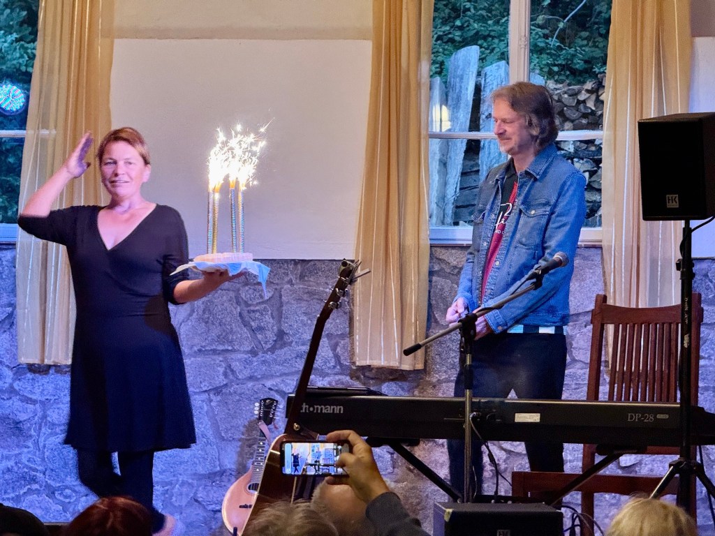 Ray says: “It turns out that a lot of places have the claim to be ‘the middle of nowhere’. In one such venue, the old dance hall in Mitlechtern, it was known that I had a birthday and a nice lady presented me with a cake on stage, complete with fireworks. However, her mother saw that and decided the cake was not good enough so she went into her kitchen and by the end of the set, had baked me a much bigger one; chocolate with fresh pears if I remember rightly. My friend Ulf came on stage and played bodhran on a few songs. It was a great way to spend a birthday.“