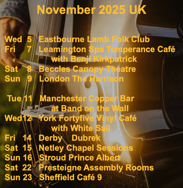 In September 2025, Ray played twelve shows in Denmark and Germany driving some 5047 km, this time driving on his own. He says of the tour: “I made a lot of new friends, catching up with some old friends. I saw a lot of beautiful country too, driving across the Harz mountains several times, the Weser valley, the Rhine valley, across the Elbe several times, and all the way to the Oder on the Polish border. It was 28c when I started, but by the time I left Germany autumn had started to colour the oak and beech trees that lined the avenues and the wooded hills of Hesse. Thanks to everybody that came out for the concerts, to the promoters and the friends, all of whom showed me very generous hospitality.“