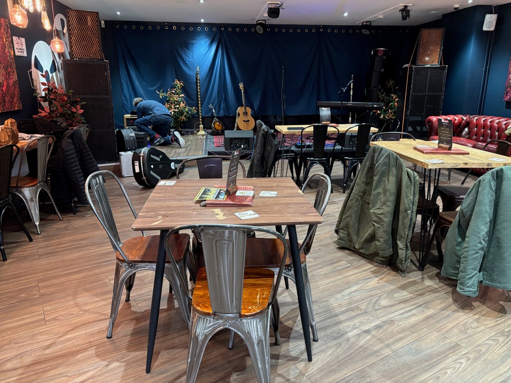 The Dubrek Studios have facilities for rehearsing and recording as well as a small venue. It’s well designed and sound-proofed so that in the venue you cannot hear the group rehearsing in the studio.