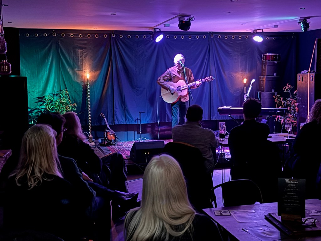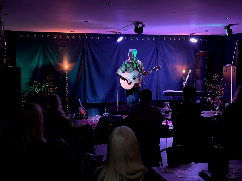 Ben’s son Joe Stone is primarily a playwright and actor. He is also a sensitive singer-songwriter and opened the evening with five songs, playing a guitar given to him by Martin Simpson.